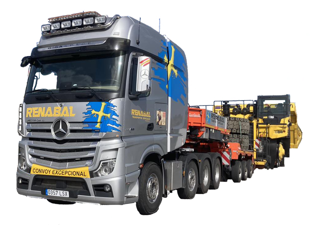 -En Renabal Transportes realizamos transportes de todo tipo de maquinaria de obra pública, demolición, minería y calderería pesada por todo el territorio nacional, Francia y Portugal.